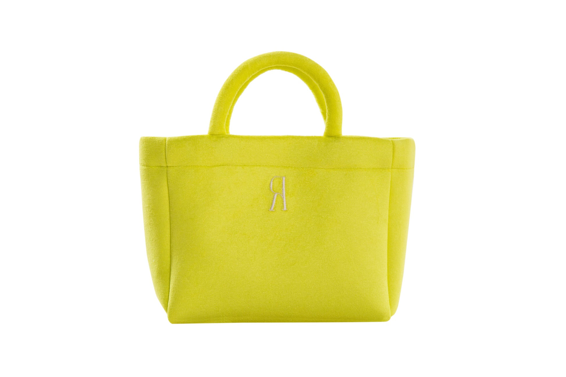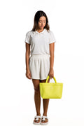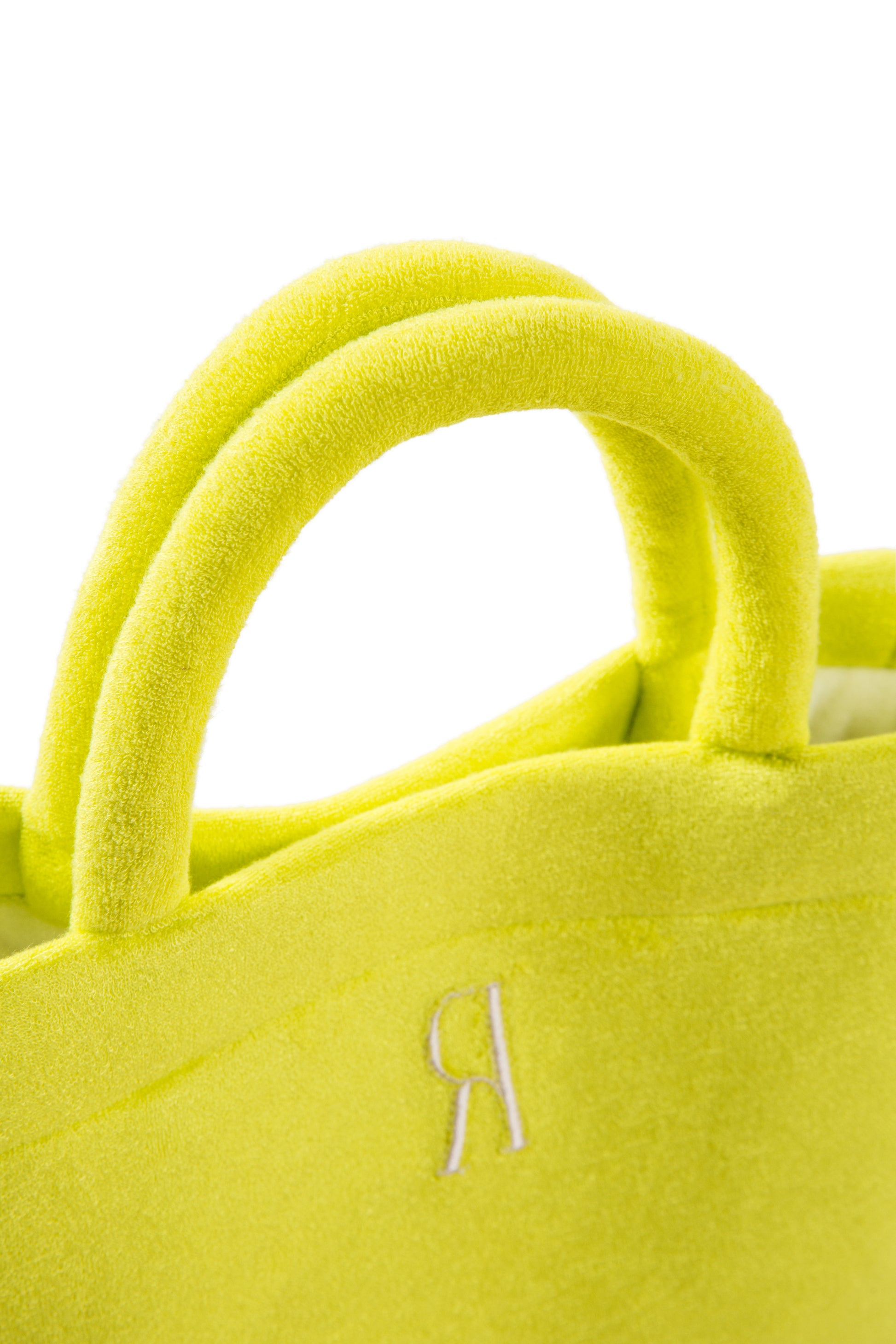 Bolsa tote atoalhada verde lima com forro interno atoalhado off white. Fecho de imã e bolso interno. Acompanha Dust bag de cetim e almofada para manter estrutura da bolsa quando guardada.