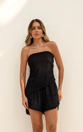 Bata assimétrica tomara que caia, confeccionada em malha atoalhada. Possui elástico no decote o que faz com que a peça seja firme no corpo. Modelagem ampla.