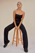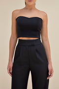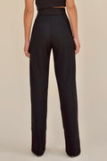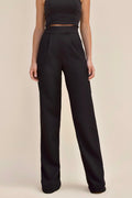 Calça alfaiataria pantalona cintura alta, produzida em crepe. Possui fechamento interno em botão, colchetes e zíper.