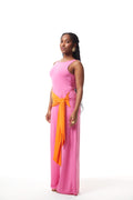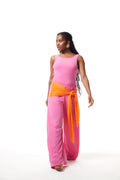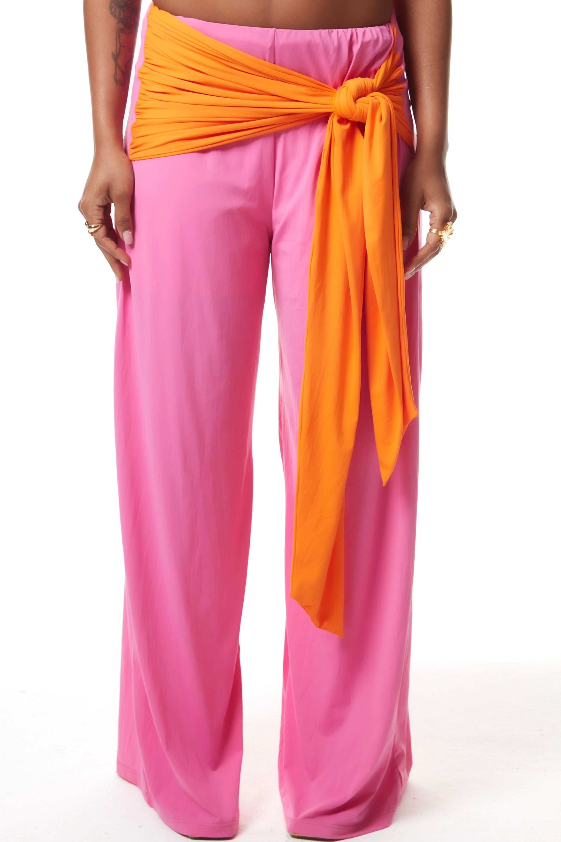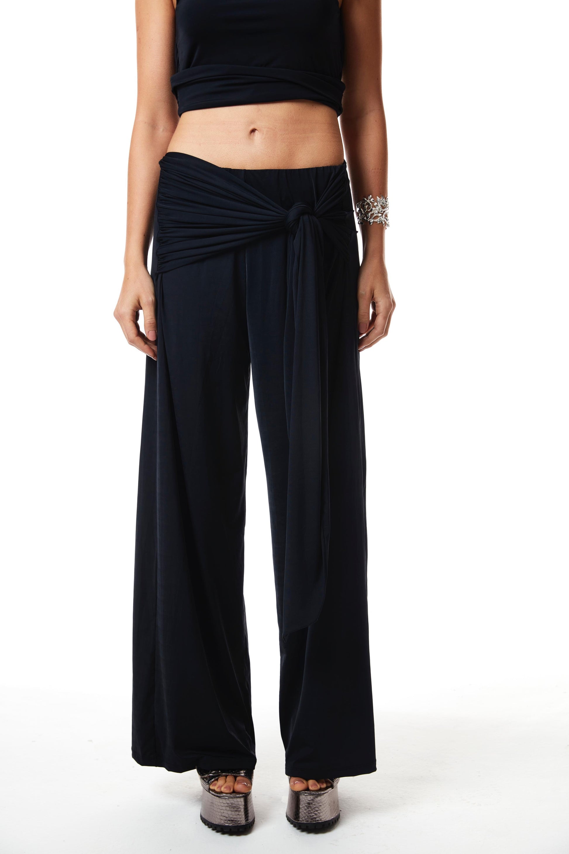 Calça pantalona confeccionada em Lycra Adaptiv, confere leveza, conforto e caimento promovendo suavidade e sensação de frescor em contato com a pele. Possui modelagem ampla com cos embutido e amarração frontal, criando um charmoso nó.