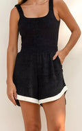 Shorts com modelagem ampla, confeccionado em malha atoalhada, possui cós alto e elástico na cintura. barra assimétrica sendo a parte da frente mais curta e atrás mais comprido.